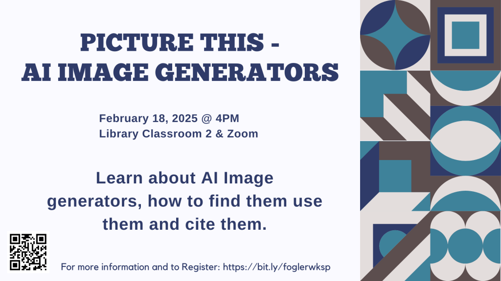 Learn about AI Image generators: how to find them, use them, and cite them. To register and get Zoom link, please go to our Workshops Guide.