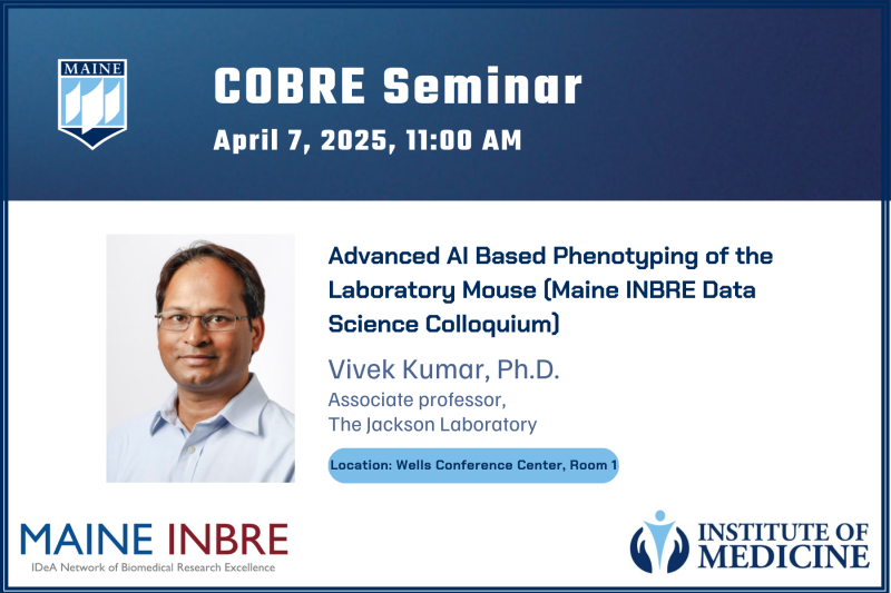 Apr 7 11:00 am Advanced AI Based Phenotyping of the Laboratory Mouse (Maine INBRE Data Science Colloquium) Wells Conference Center ME Event Details Get Directions