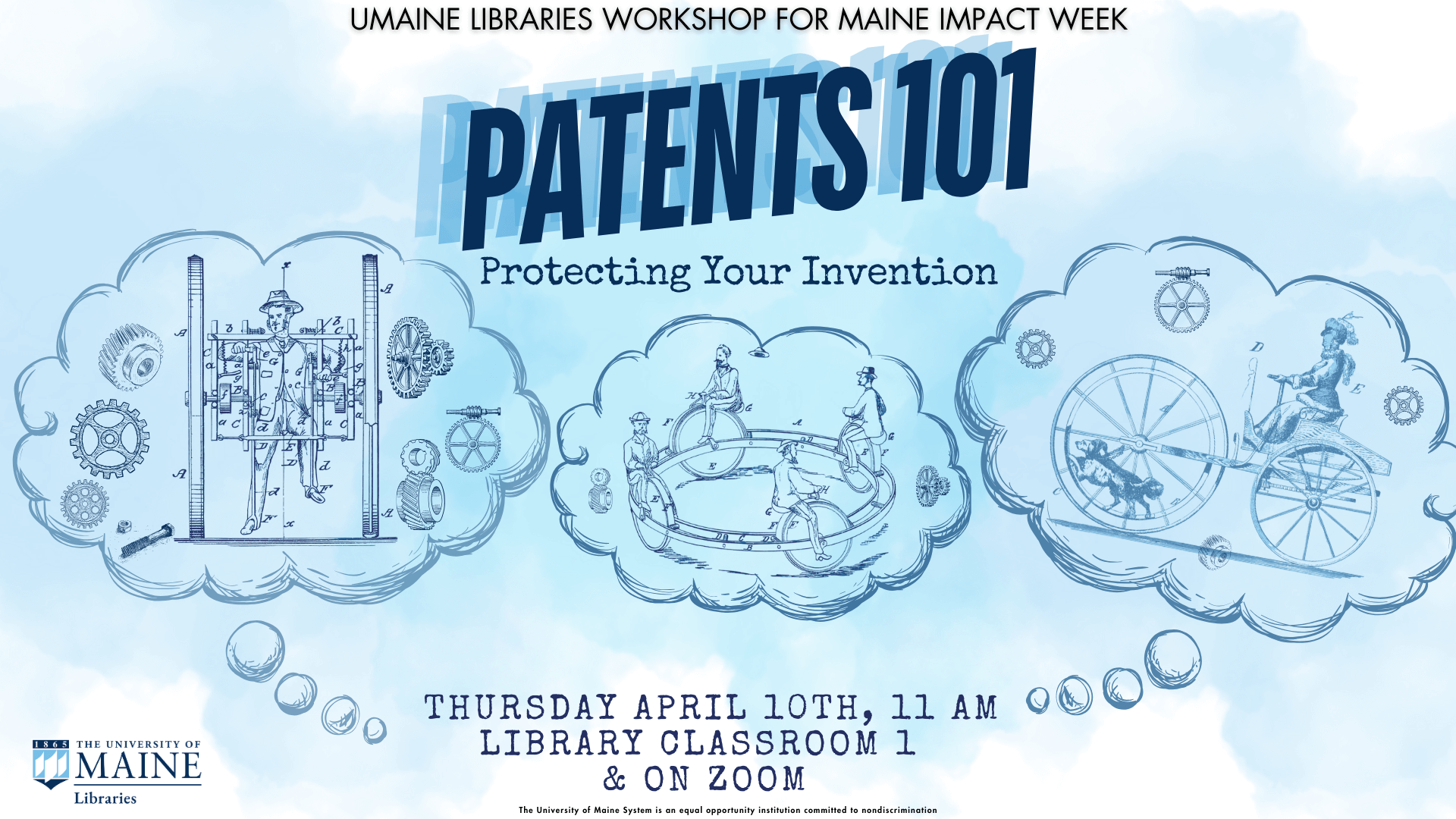 Apr 10 11:00 am - 12:00 pm Patents 101: Protecting Your Invention Fogler Library Classroom 1 University of Maine, Orono +1 more Event Details Get Directions
